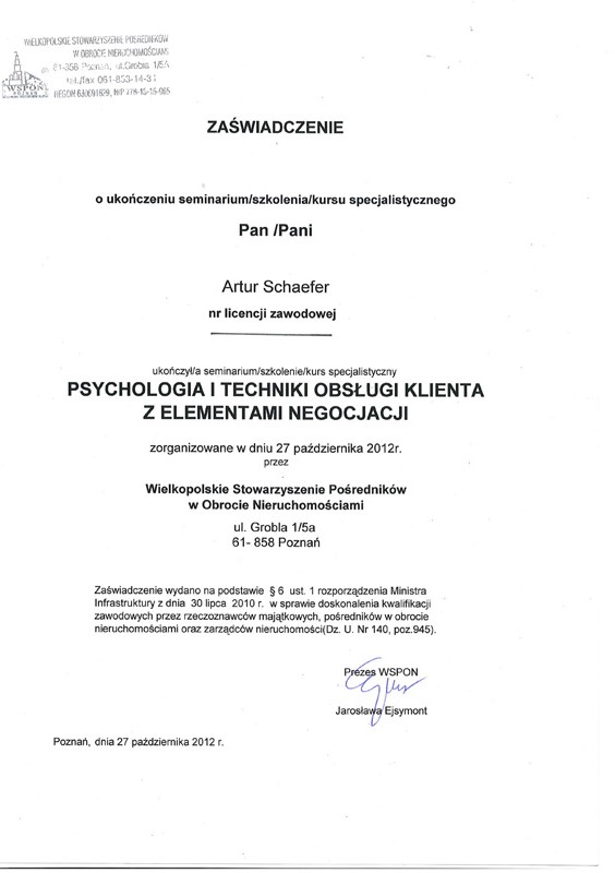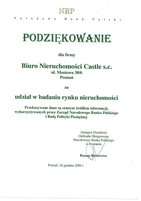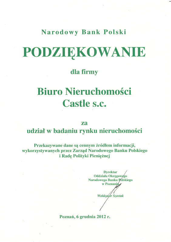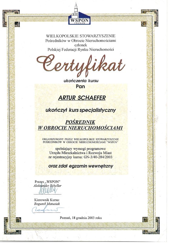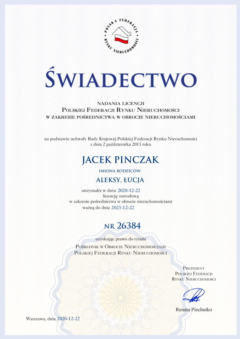 Biuro jest licencjonowane (Aleksandra Bornikowska – licencja zawodowa nr 4292 uzyskana w 2003 roku) i ubezpieczone od odpowiedzialności cywilnej w PZU S.A. Jesteśmy członkami Wielkopolskiego Stowarzyszenia Pośredników w Obrocie Nieruchomościami, Pomorskiego Stowarzyszenia Pośredników w Obrocie Nieruchomościami oraz Polskiej Federacji Rynku Nieruchomościami.