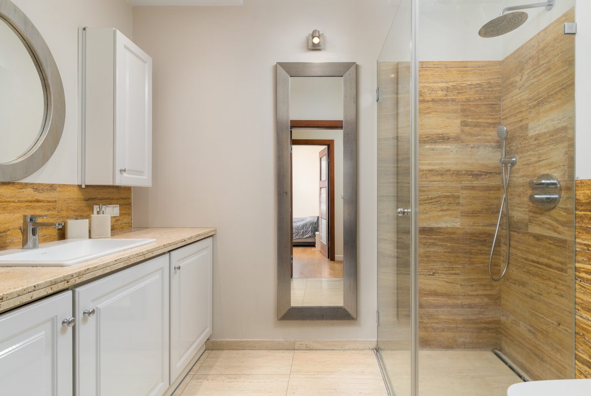 -przestronna łazienka z prysznicem,