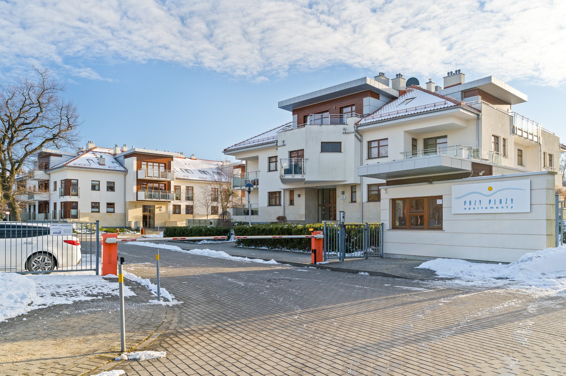 Inwestycja, w której znajduje się apartament jest w pełni strzeżona, monitorowana, miejsca postojowe dla gości na terenie zamkniętym.