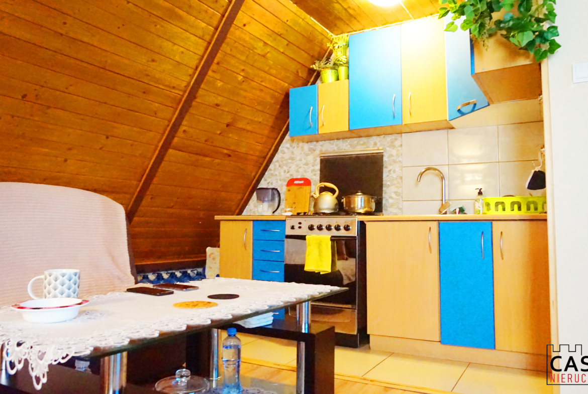 -parter: salon z jadalnią, sypialnia, pomieszczenie gospodarcze, osobna kuchnia, łazienka.