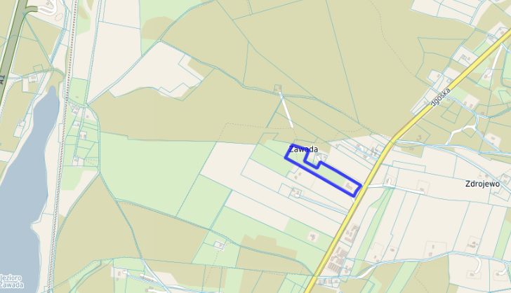 Działka znajduje się w pobliżu jeziora Zawada, a także autostrady A1. Do Gdańska dojedziemy w około 1h – 90 km, do Świecia 27minut, Grudziądza 20 minut. W pobliżu znajduje się także Wisła.