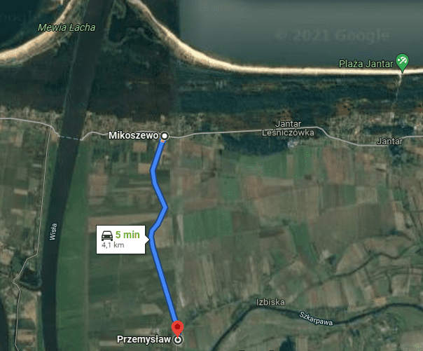 Do drogi głównej – łączącej wieś Przemysław i np. Mikoszewo jest około 300m – działki znajdują się w drugiej linii zabudowy. Z tych działek nie słychać ulicznego hałasu.