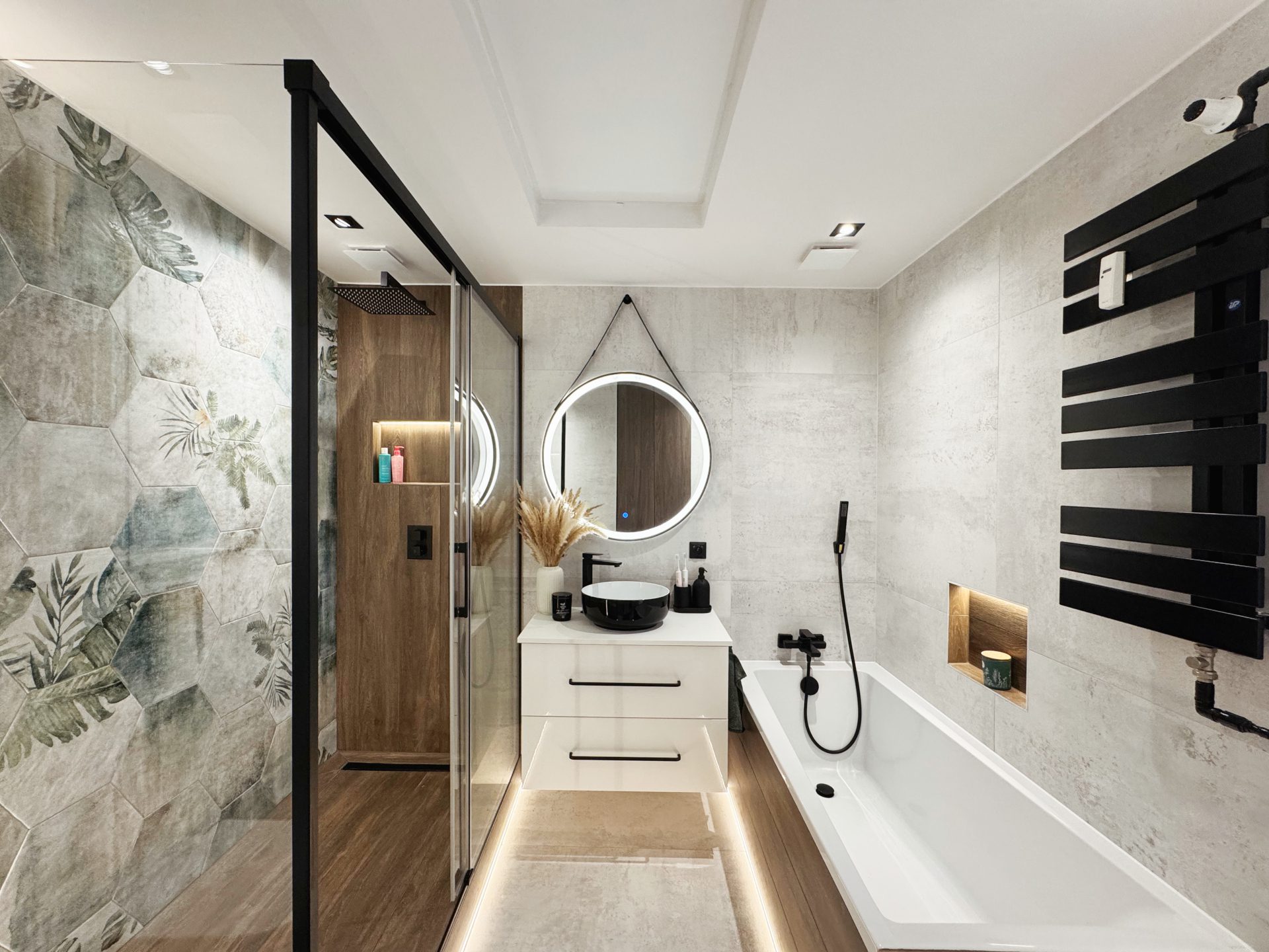 - eleganckiej łazienki (6,51 m²) – wyposażonej zarówno w wannę, jak i prysznic,