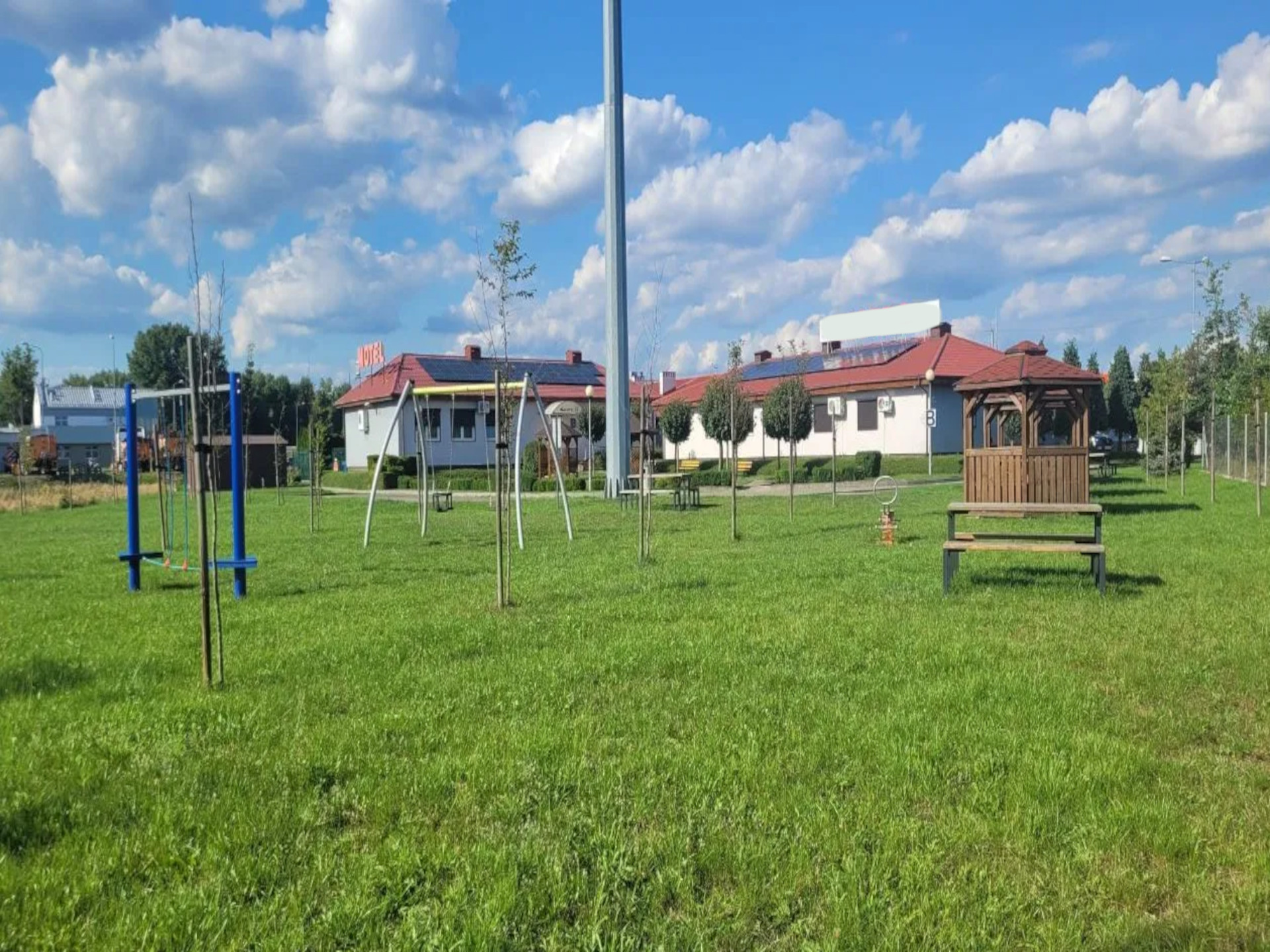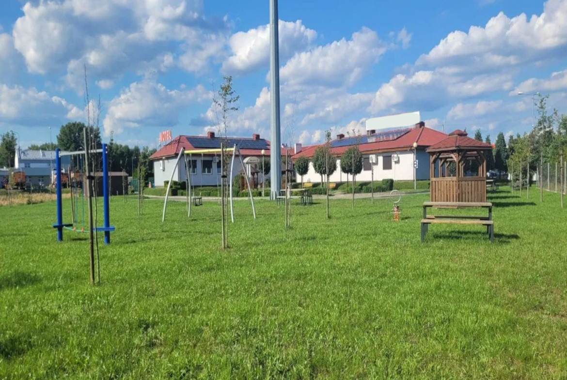 Plac zabaw, zieleń, drewniane domki – idealne miejsce na rodzinny wypoczynek