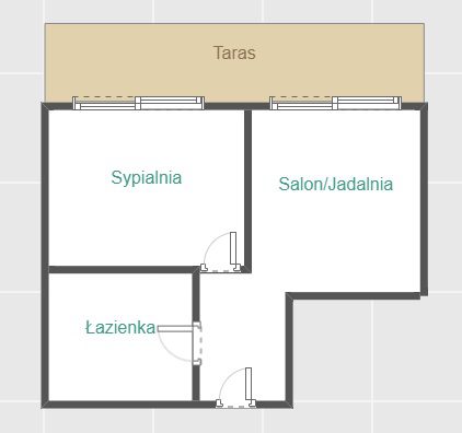 – w skład mieszkania wchodzi: salon z aneksem kuchennym i wyjściem na taras, sypialnia z wyjściem na taras, łazienka z wc, korytarz;