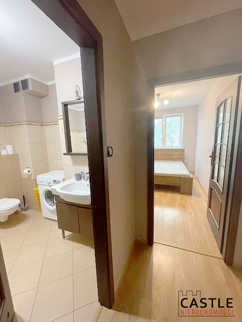 Mieszkanie o pow. 45m2 znajduje się na 3 piętrze w bloku tuż przy lesie. Przestronny salon z aneksem kuchennym i balkonem (z widokiem na las), osobna sypialnia z łóżkiem 2 osobowym, łazienka z wanną i prysznicem oraz korytarz z dużą szafą typu Komandor.
