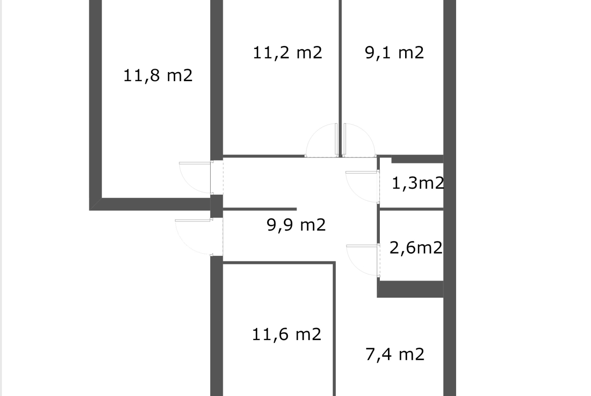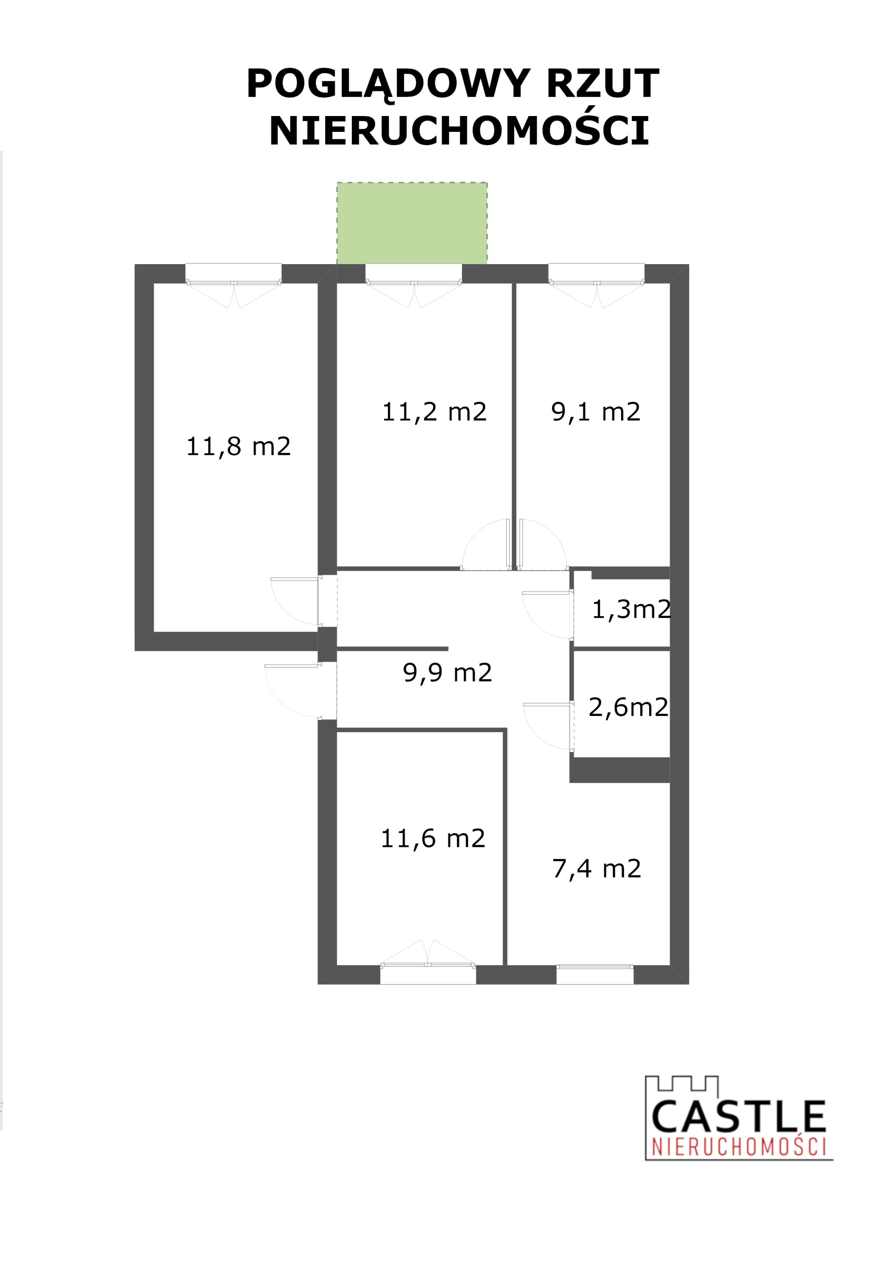 · 4 osobne pokoje o pow. 9,1m2; 11,2m2 z balkonem (1,6m2); 11,6 m2; 11,8m2
