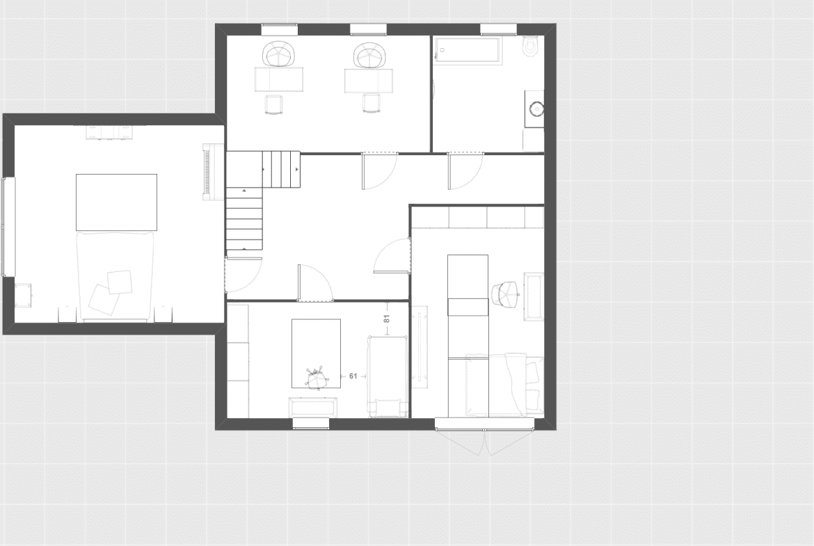 – według projektu: na piętrze można zrobić 4 sypialnie+garderobę+łazienkę z wc, a na parterze: korytarz, kuchnia, sypialnia, łazienka i salon;