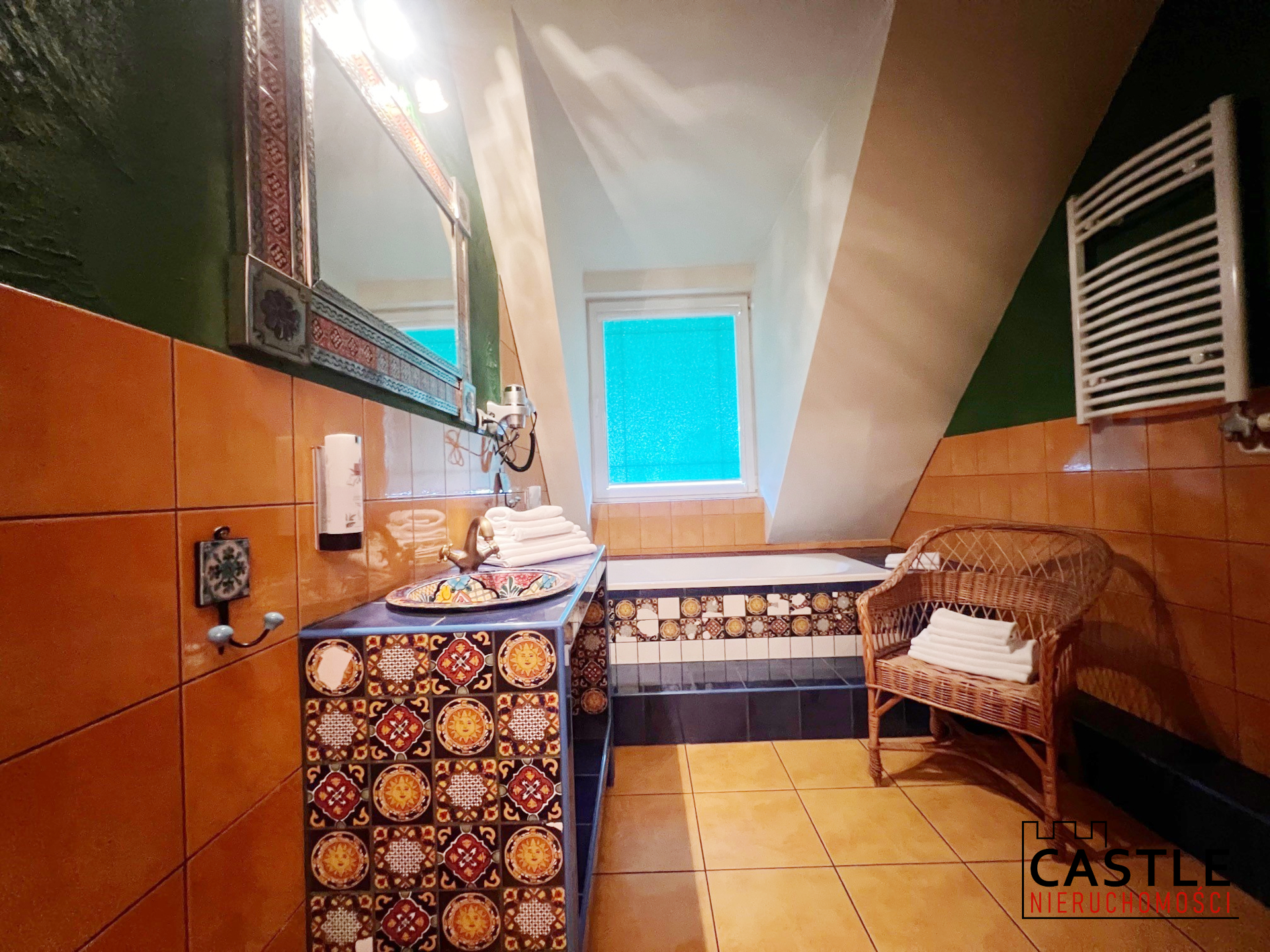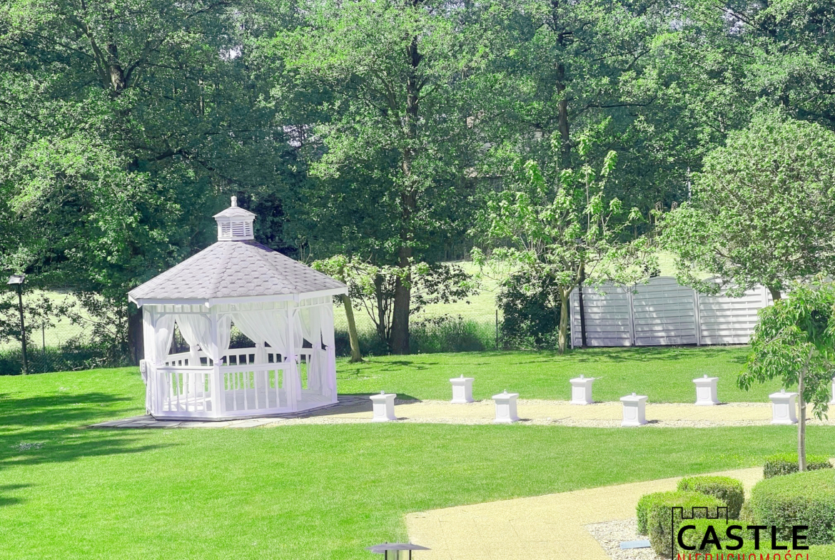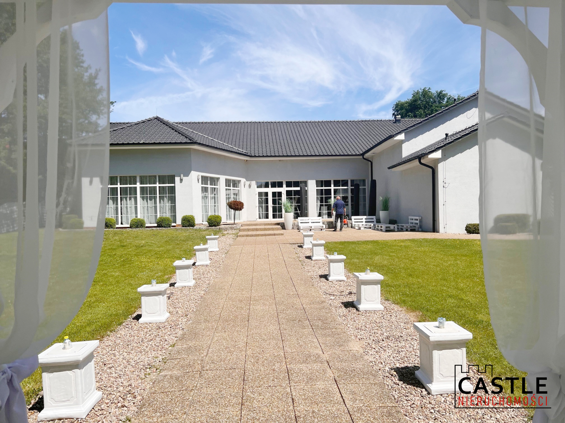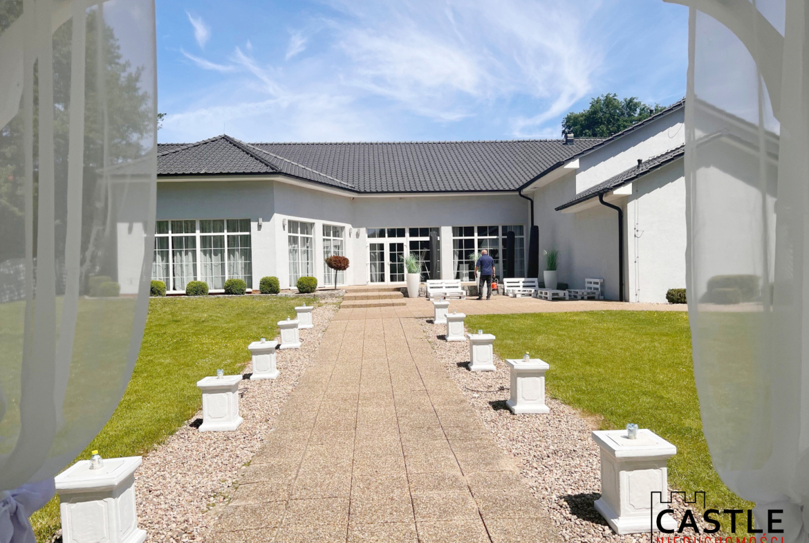 Jest to osobny budynek, w pełni zaaranżowana i umeblowana sala weselna wraz z pomieszczeniami przynależnymi, z wyjściem na duży taras i ogród
