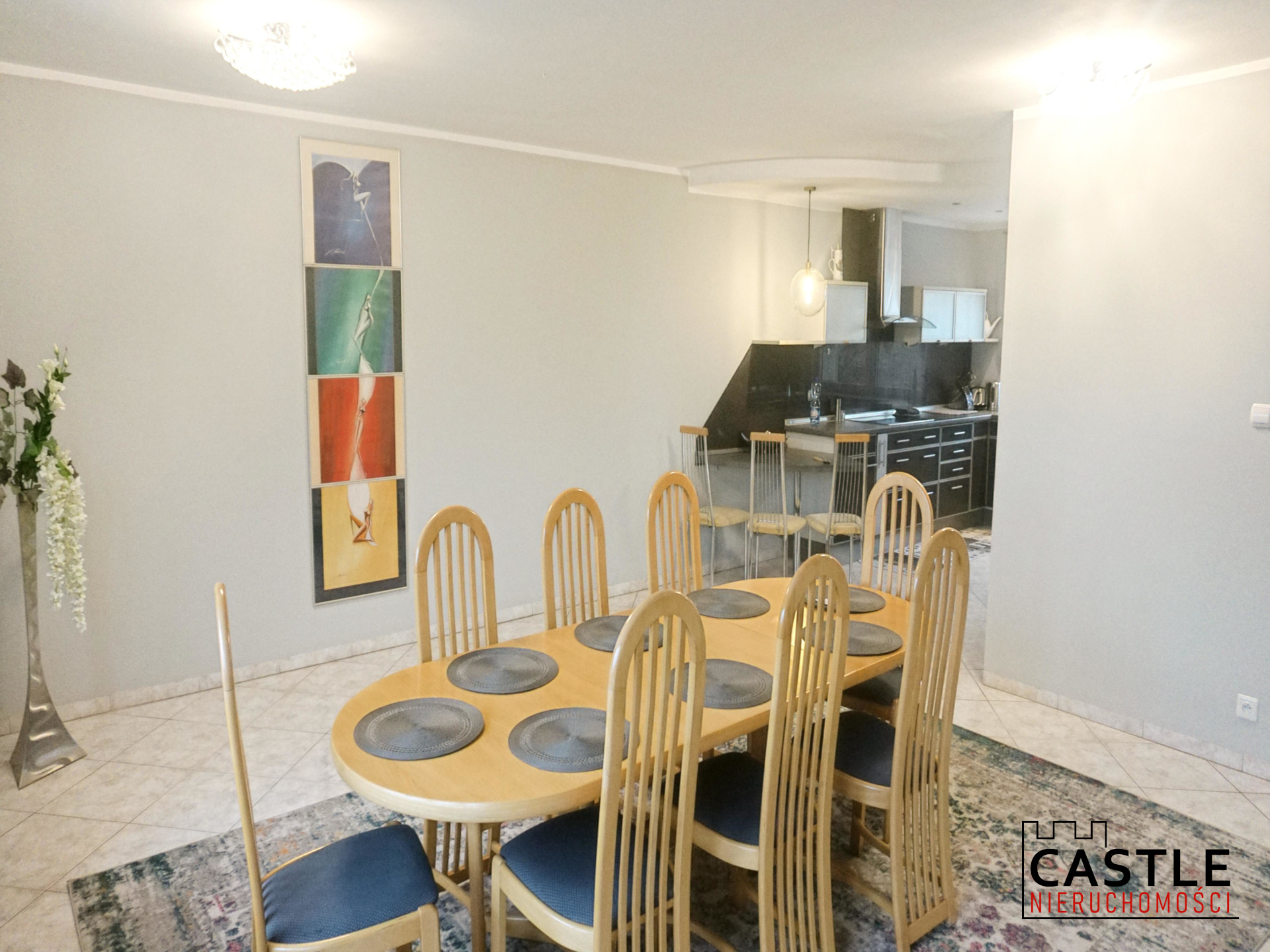 - kuchnia otwarta, w pełni wyposażona w zabudowę i sprzęty AGD