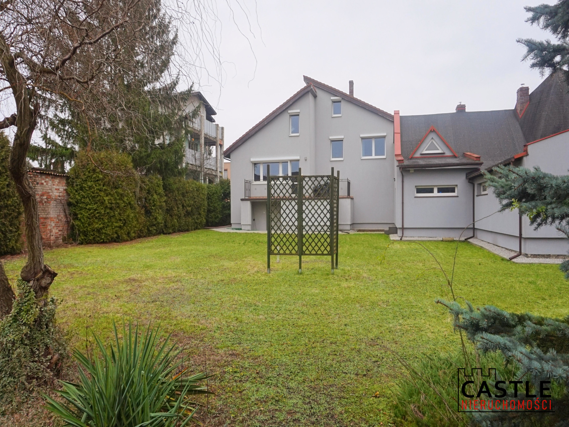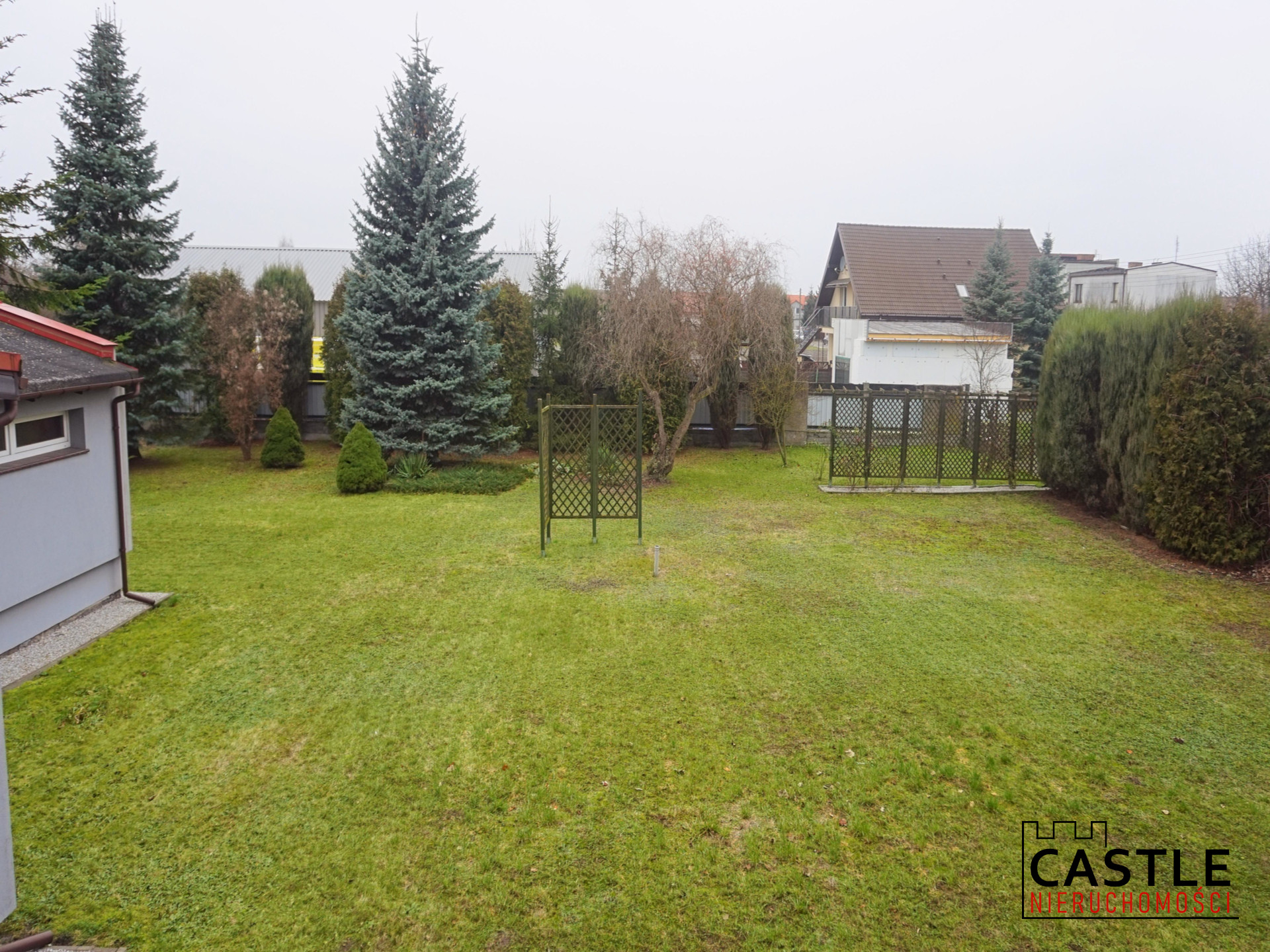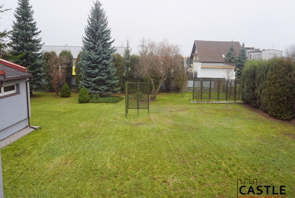 - działka: 2000 m² z ogrodem (trawa, drzewa)
