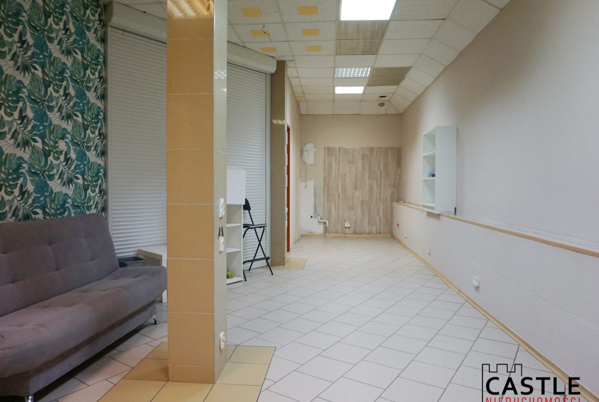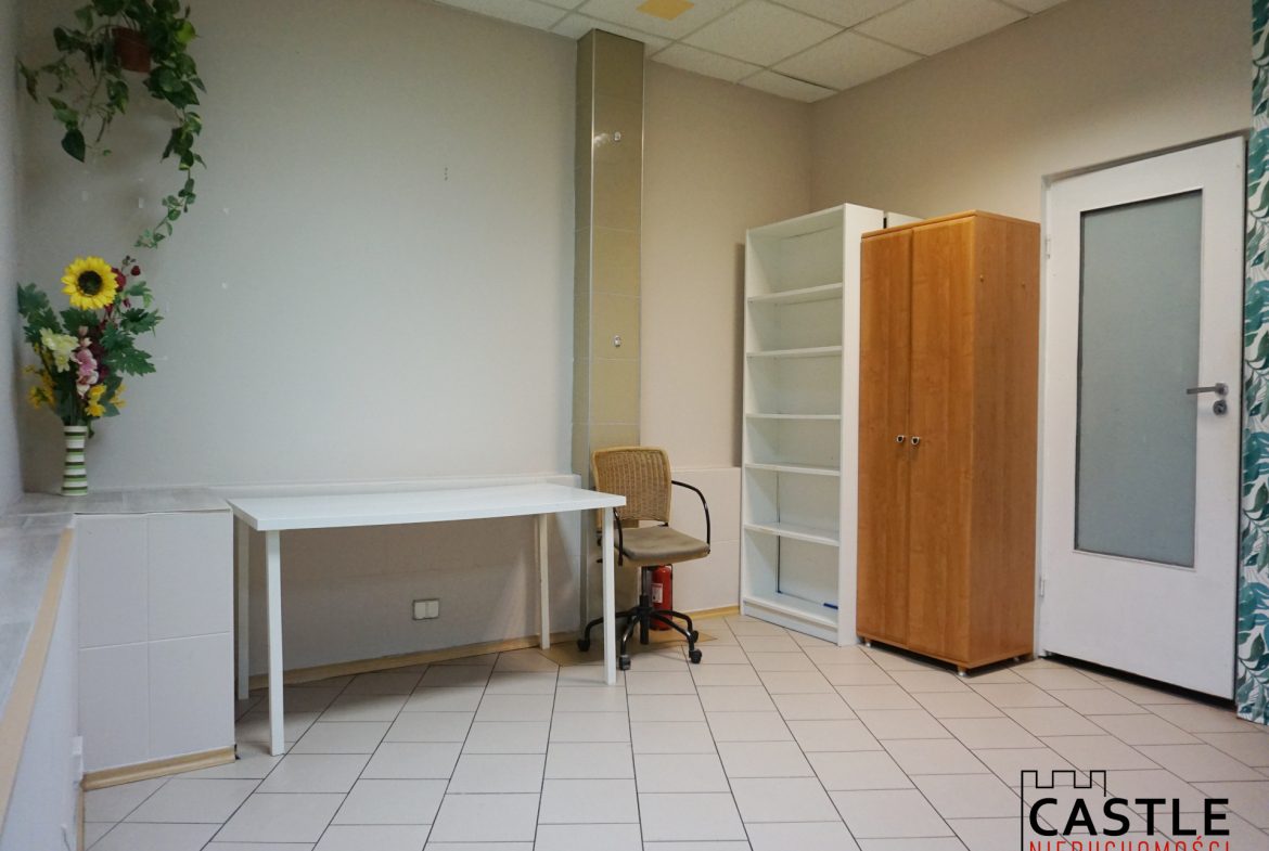 – w skład lokalu wchodzi: osobne wejście, korytarz (przystosowana poczekalnia), łazienka, sala sprzedaży i magazynek;