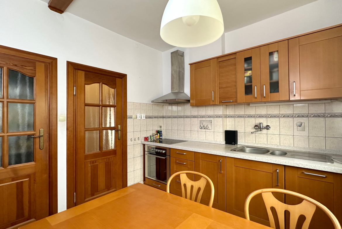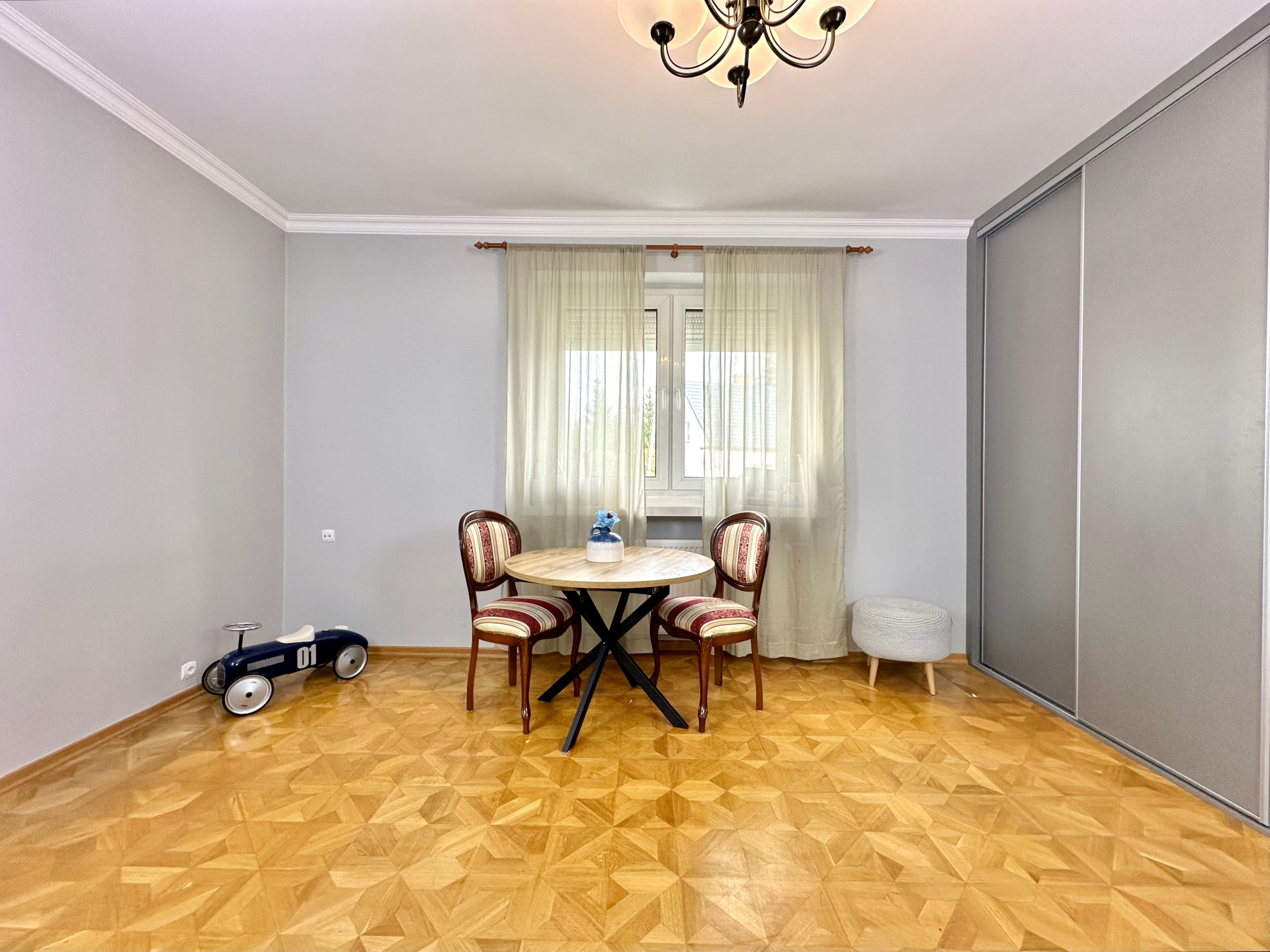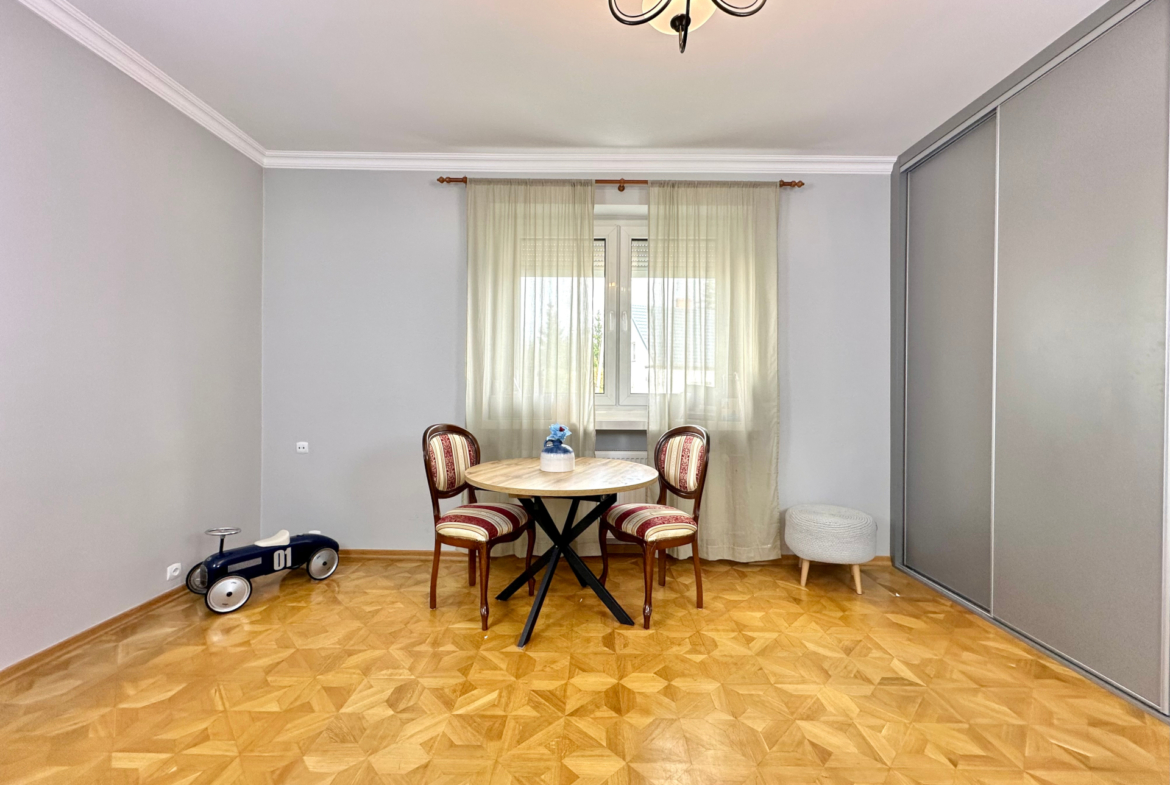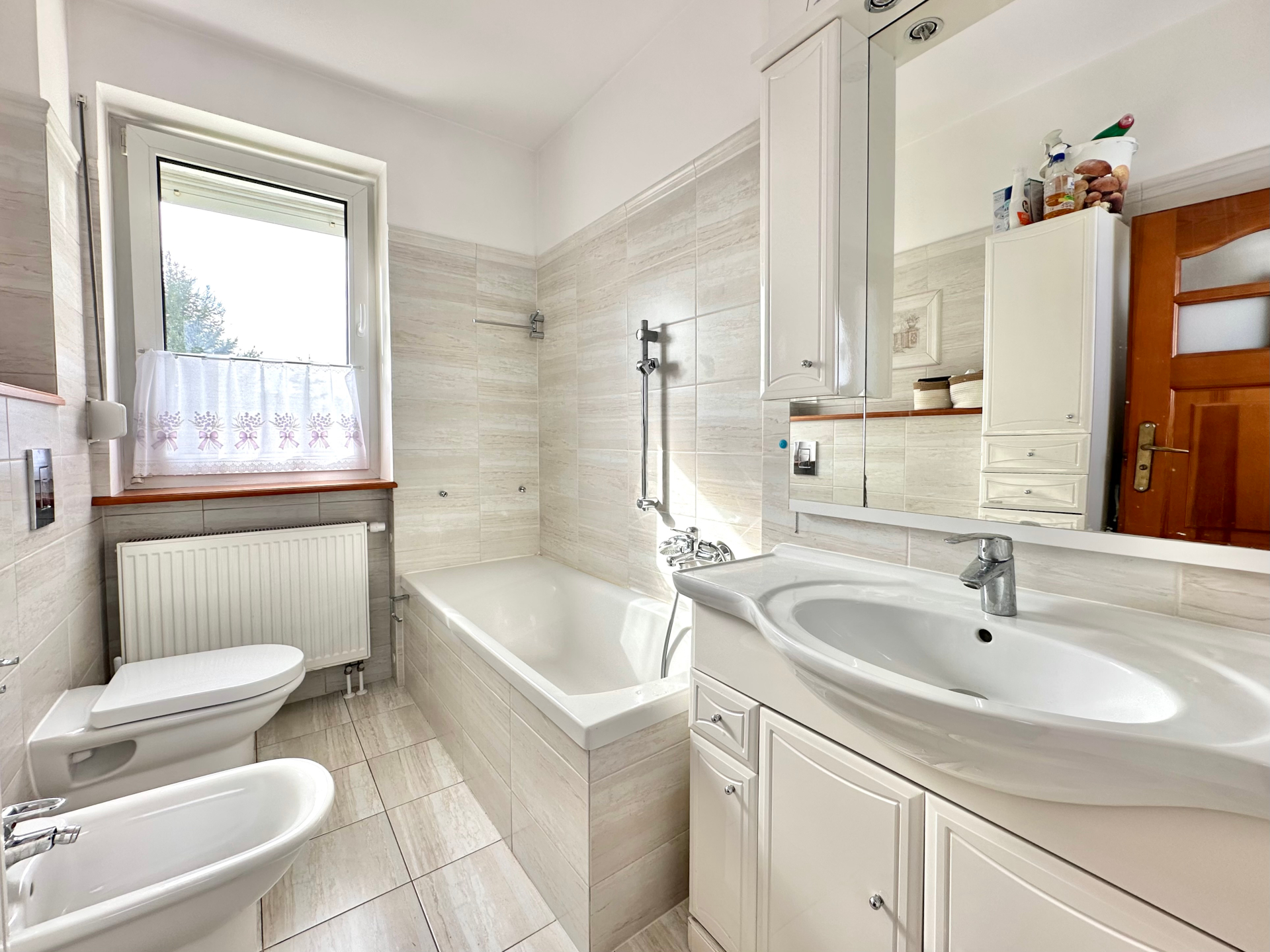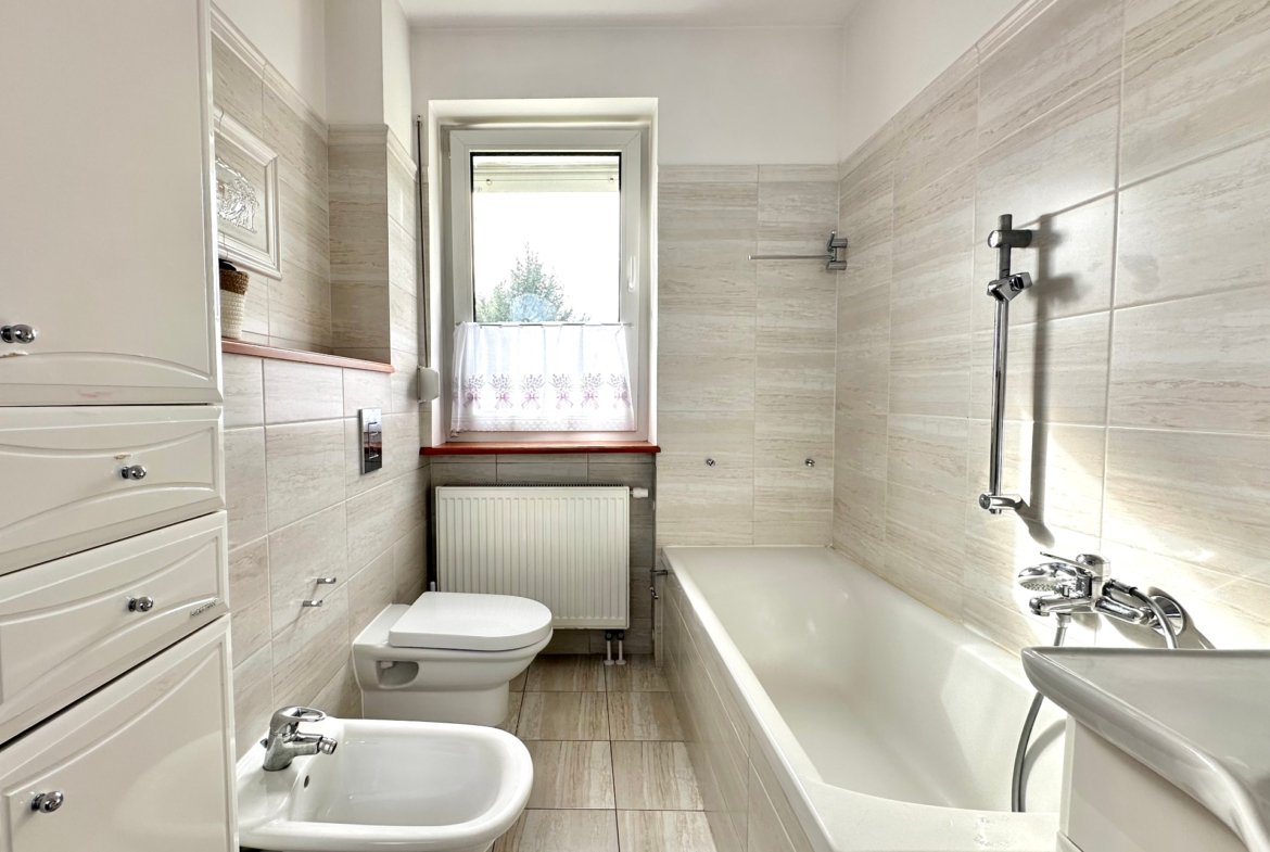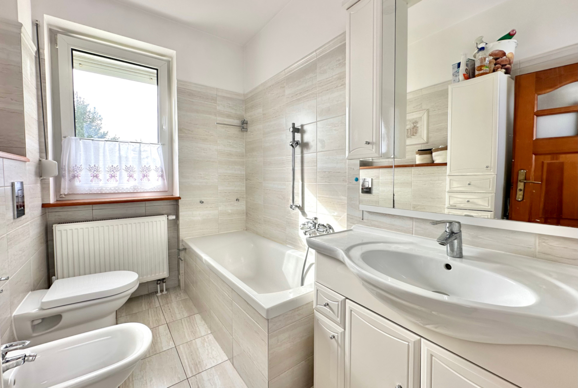 Gabinet z klimatyzacją, kuchnia ze spiżarnią, salon, jadalnia, łazienka z wanną.