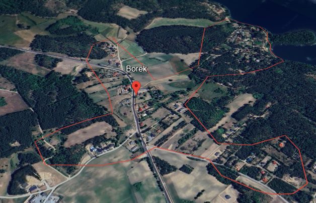 Działka położona jest w niewielkiej wsi Borek na Pojezierzu Kaszubskim. Piękne zielone tereny Kaszubskie bogate są w lasy, jeziora i pola oraz skromna zabudowa sprawia, że ta lokalizacja może być idealnym wyborem, jeżeli poszukujecie Państwo działki z niedalekim dojazdem do większych miast. We wsi znajduje się komunikacja miejska. Do jeziora Gowidlińskiego jest około 1km.