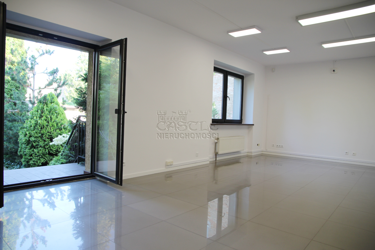 – ogromny hall ok. 50m2, z oddzielnym wejściem od strony ogrodu (poczekalnia? recepcja?),