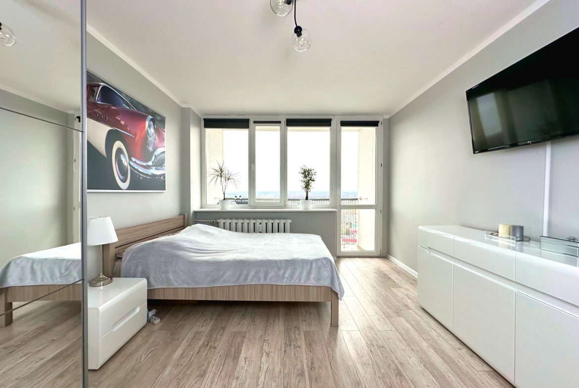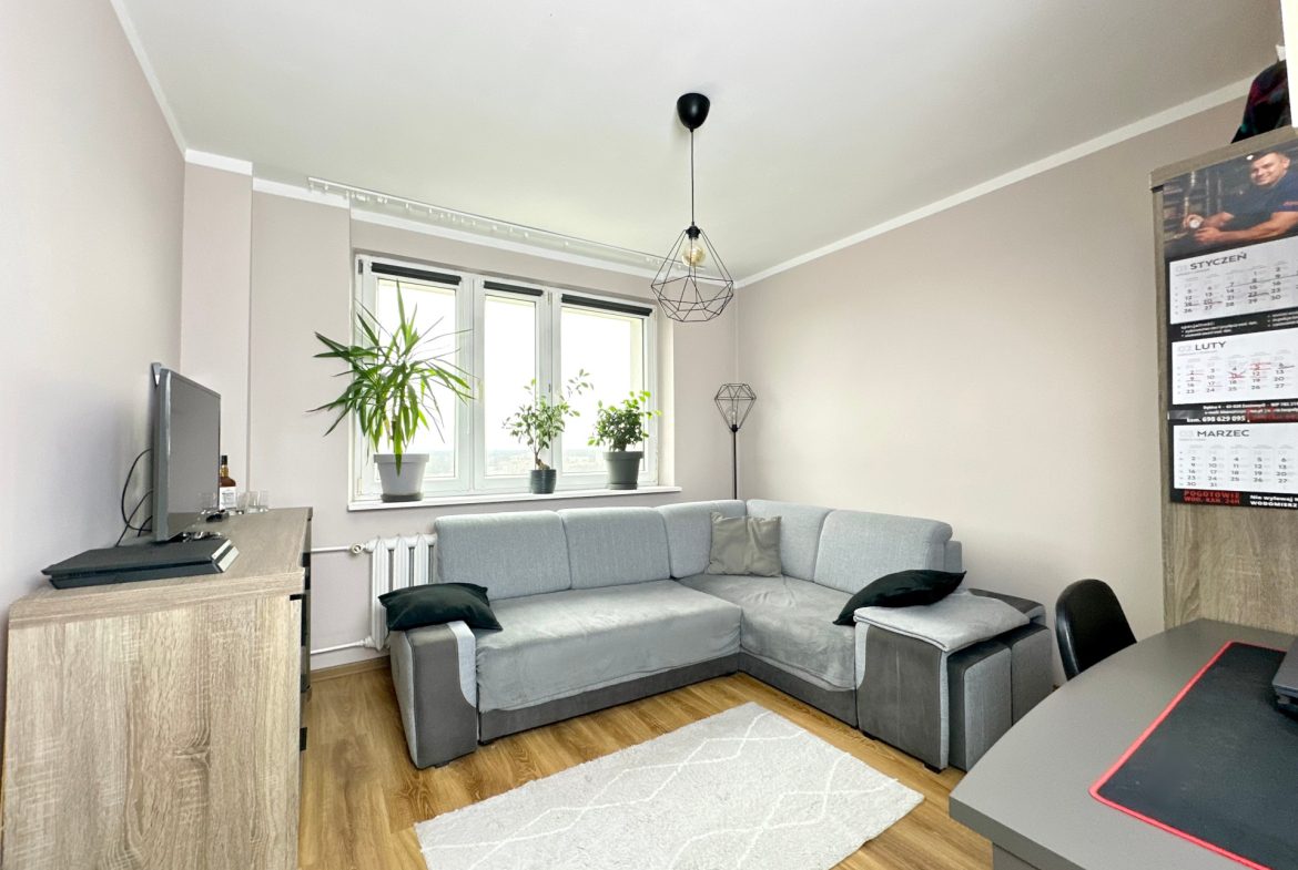 Na sprzedaż funkcjonalne, jasne mieszkanie położone na 14. piętrze w bloku z dwiema windami na Osiedlu Tysiąclecia.