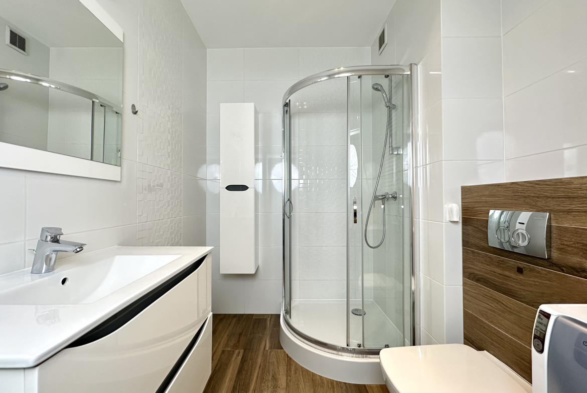 Mieszkanie zostało wykończone w najwyższym standardzie, zapewniające odpowiedni poziom elegancji. Urządzone w gustowny sposób, z wysokiej jakości materiałów. Cena mieszkania obejmuje wszystkie elementy wyposażenia widoczne na dokumentacji fotograficznej. Dodatkowo płatne: miejsce parkingowe w cenie 40.000 zł.