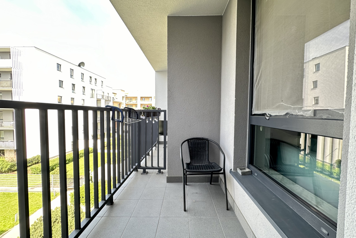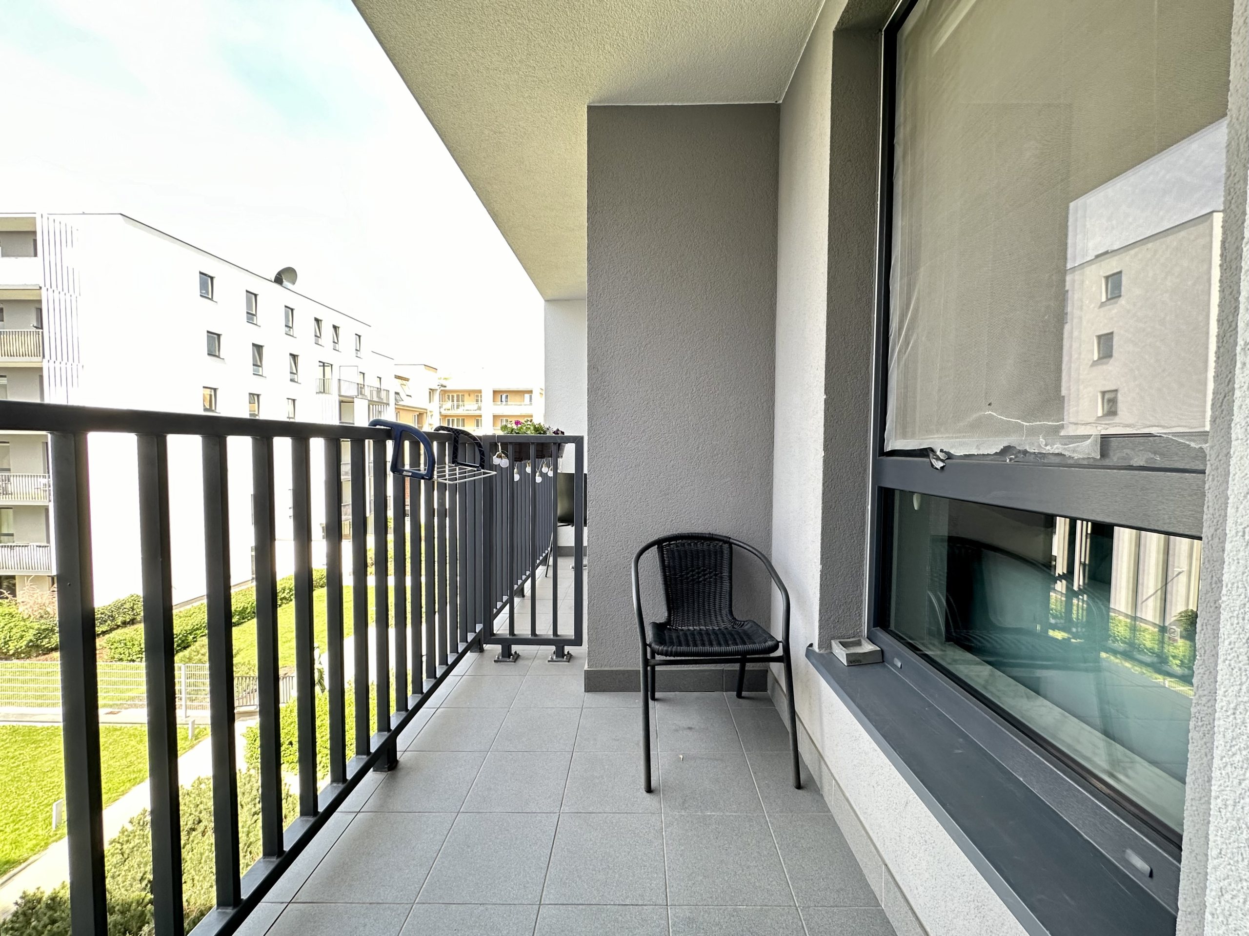 Balkon pozwala na chwilę relaksu na świeżym powietrzu, lub też spokojny poranek z kawą i książką.