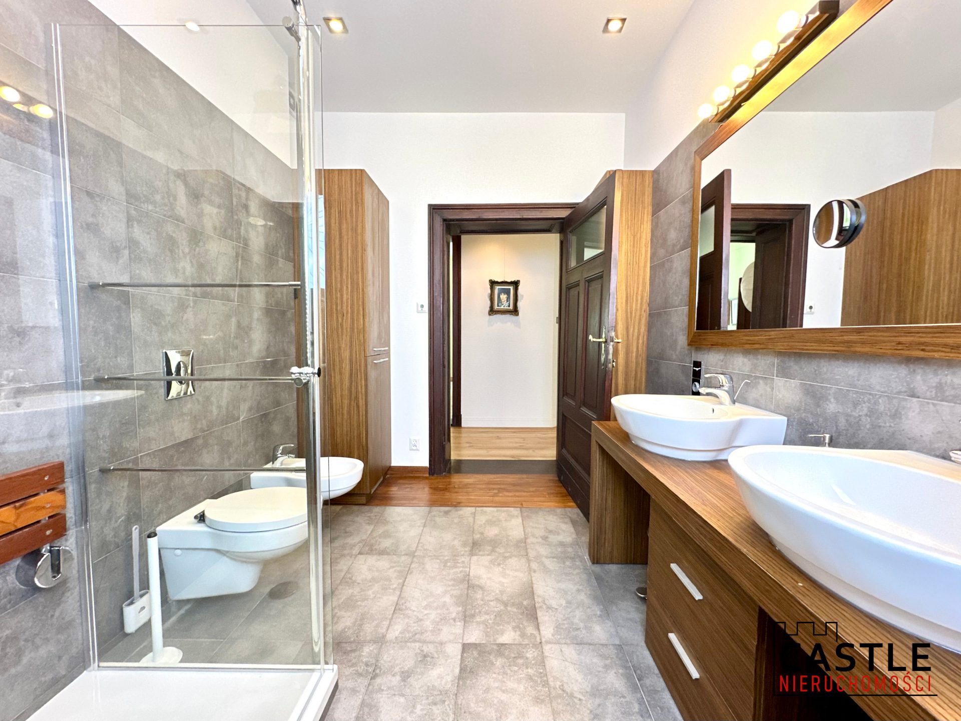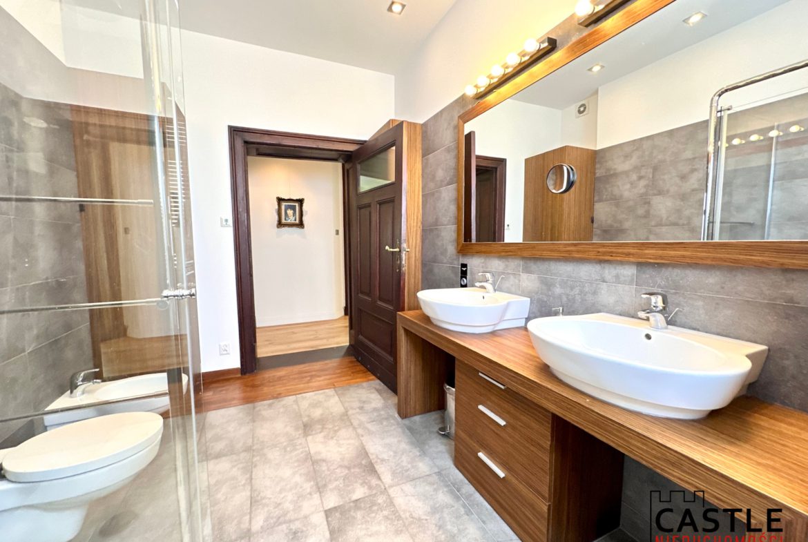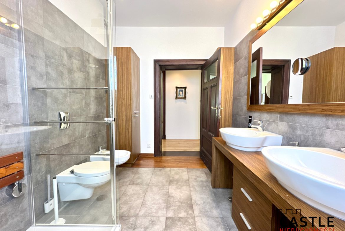- funkcjonalna łazienka z wanną, prysznicem, podwójną umywalką.