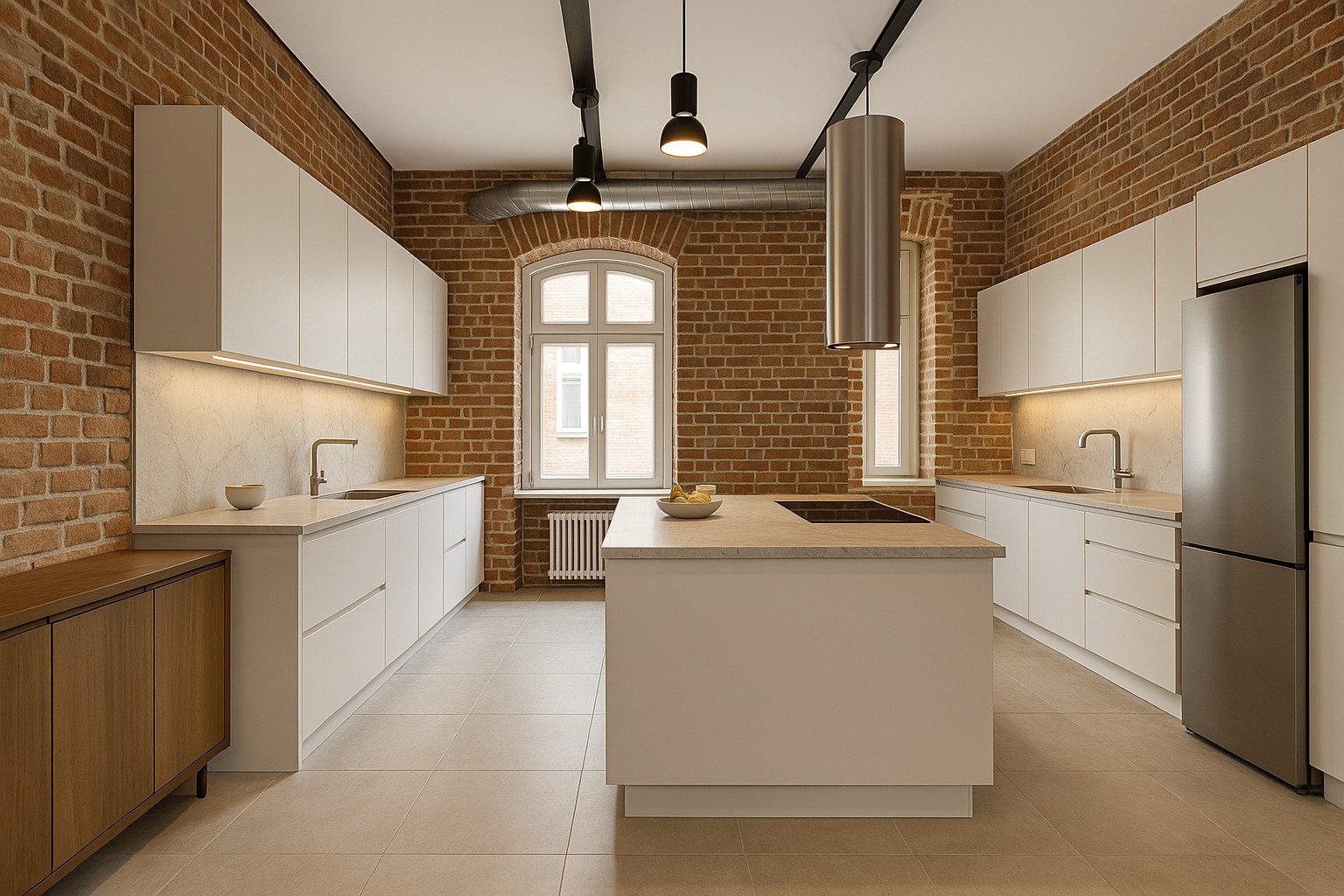 - wygodną, przestronną kuchnię z dużą wyspą, lodówką dwudrzwiową;