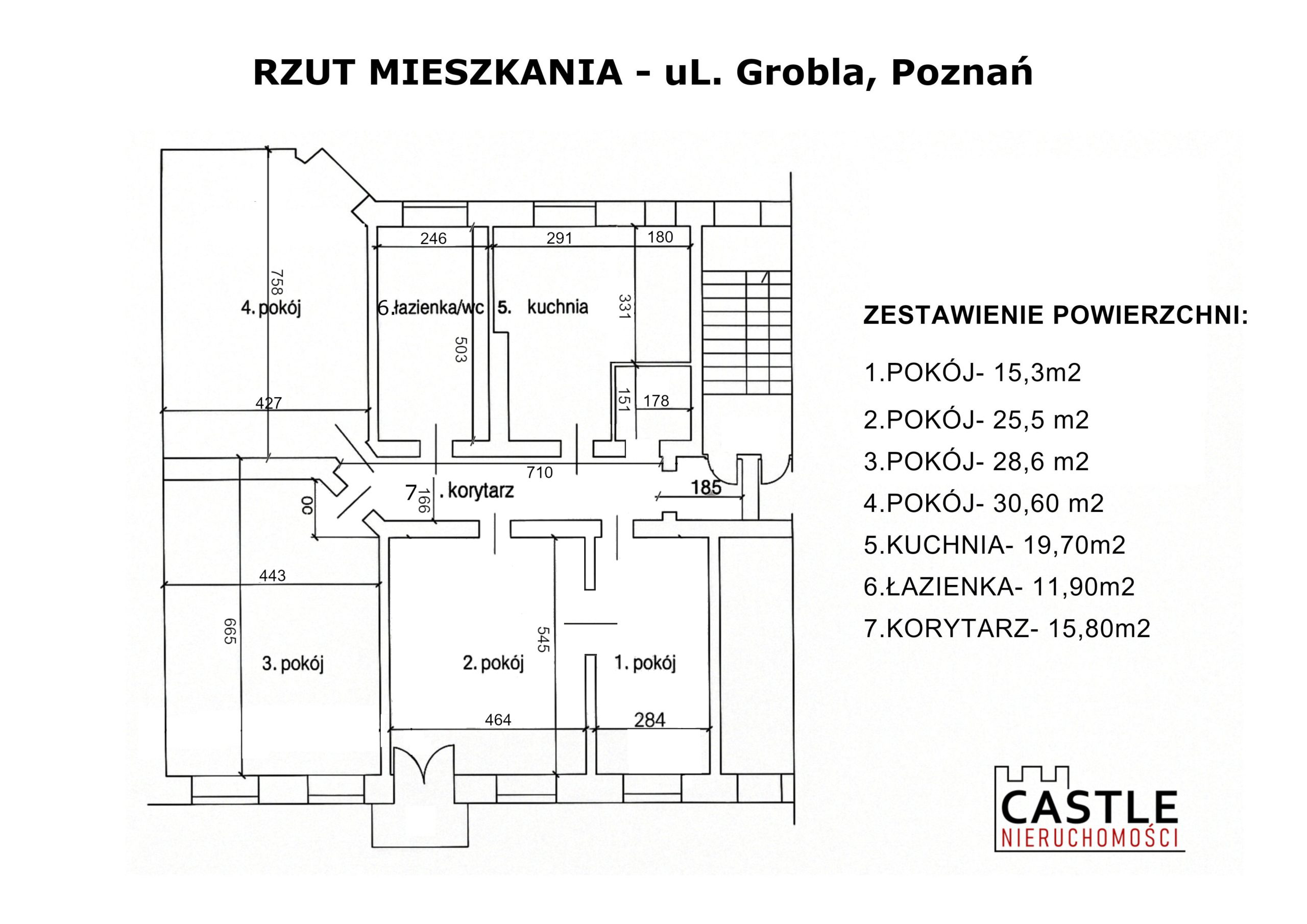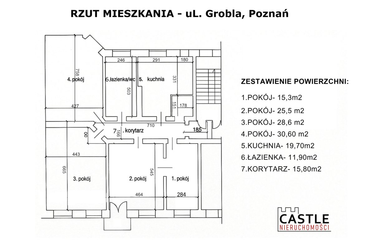 - Liczba pomieszczeń: 4 przestronne pokoje, oddzielna kuchnia, łazienka, garderoba