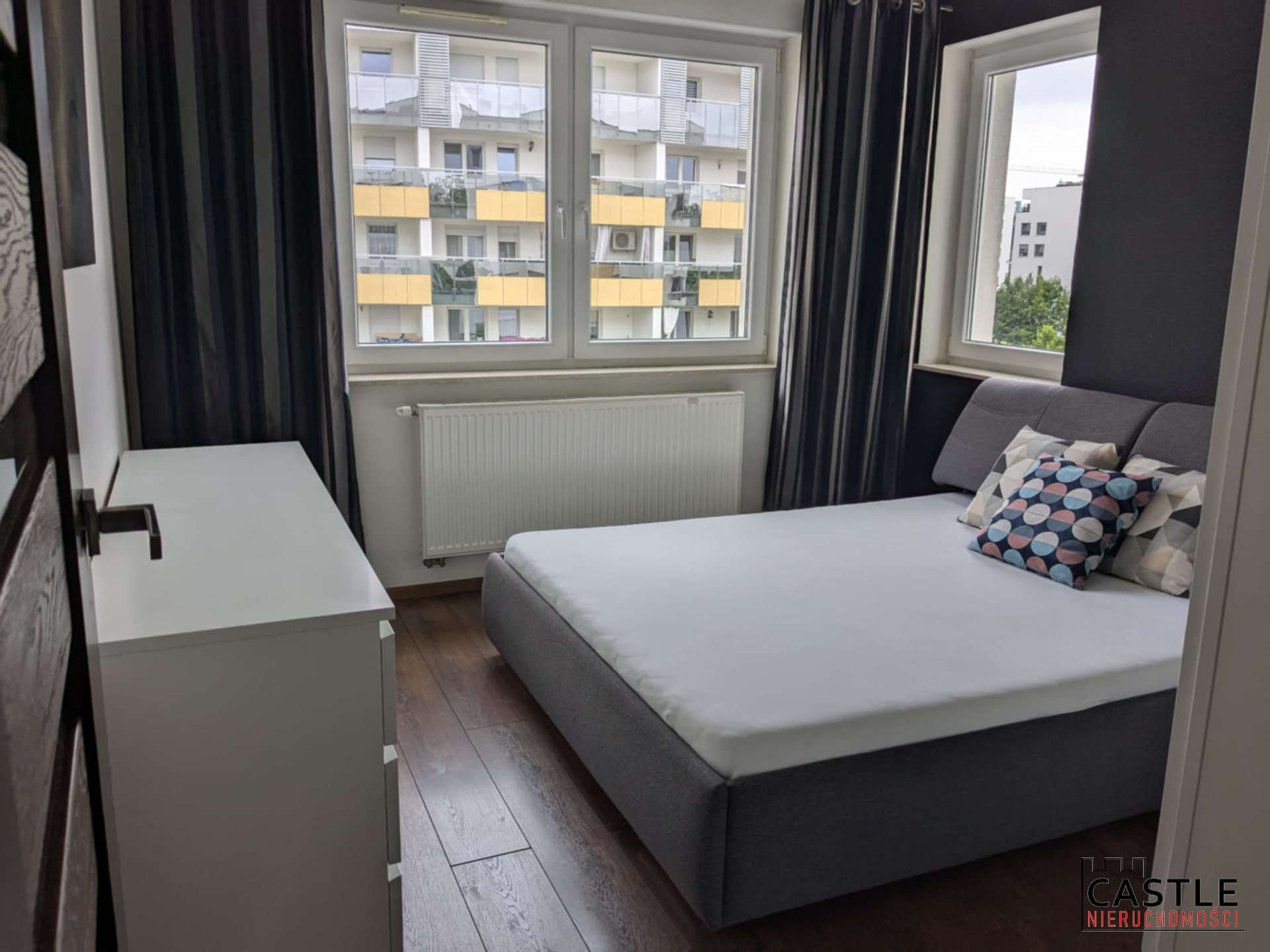 Sypialnia (12,5 m²) – łóżko queen size, pojemna szafa i komoda