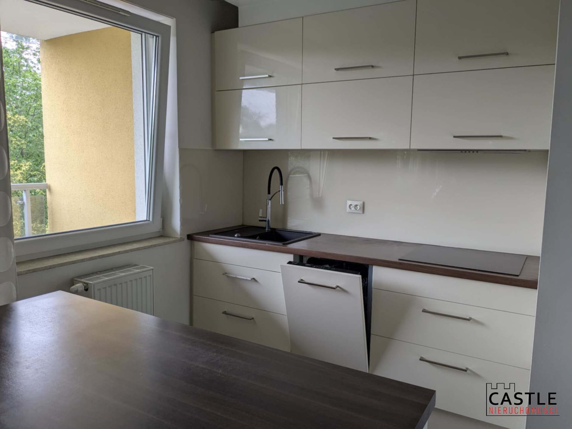Aneks kuchenny – meble w zabudowie, sprzęt AGD (indukcja, piekarnik, zmywarka, lodówka, okap)
