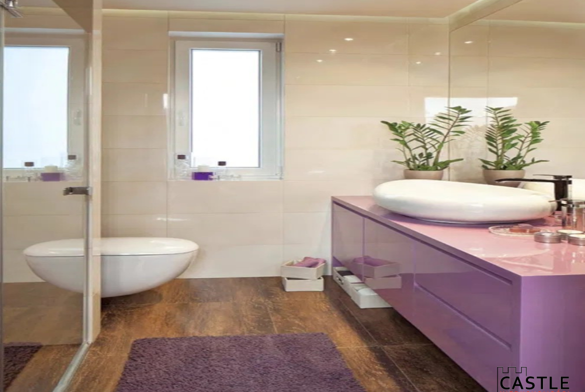 Łazienka (4,7 m²) – przestronny prysznic, szafki, ceramika wysokiej jakości