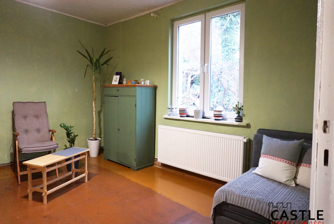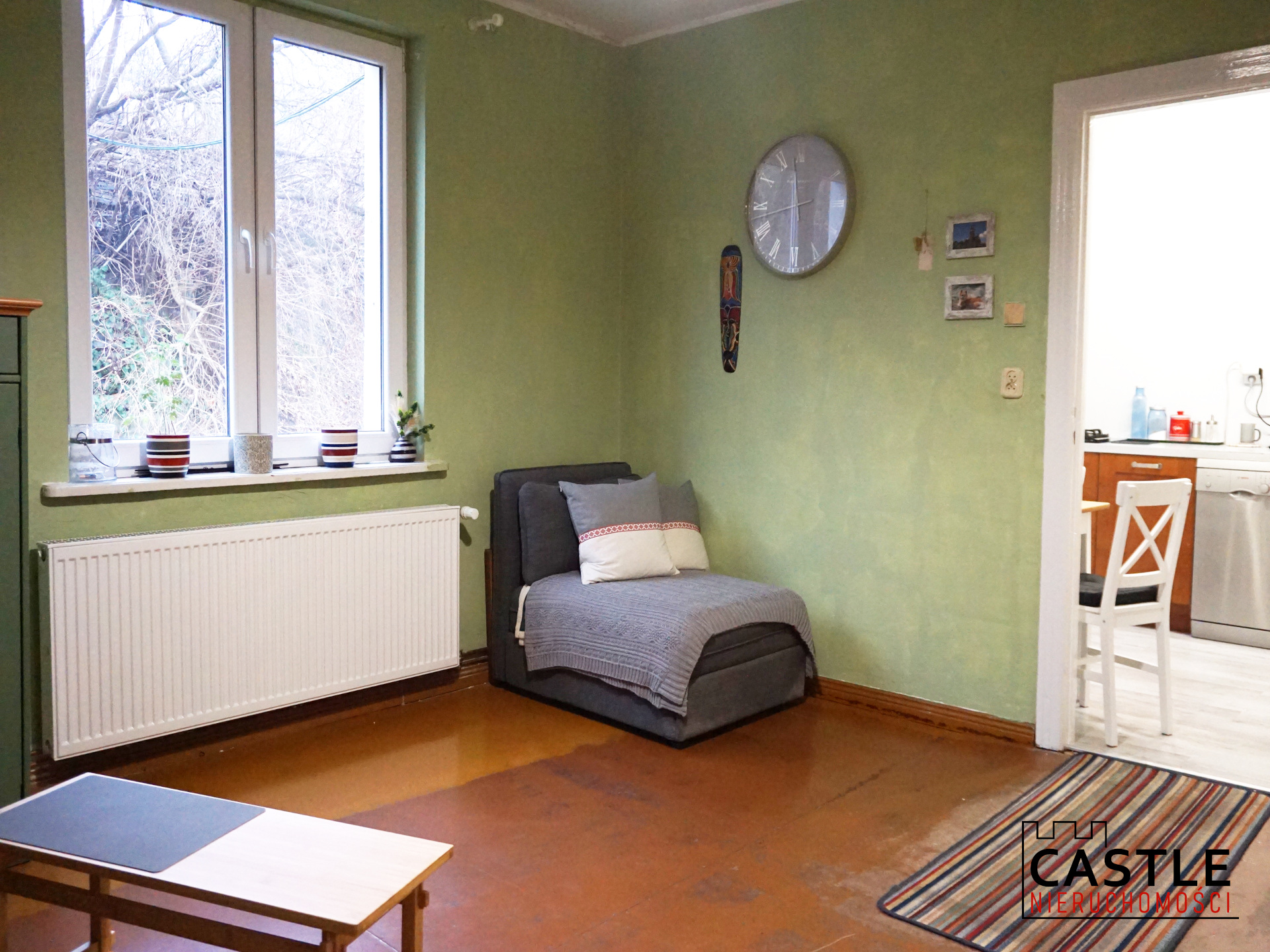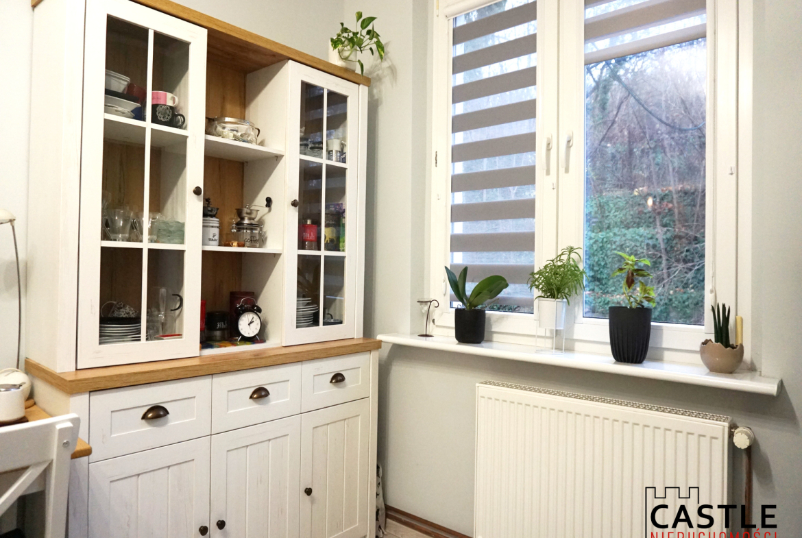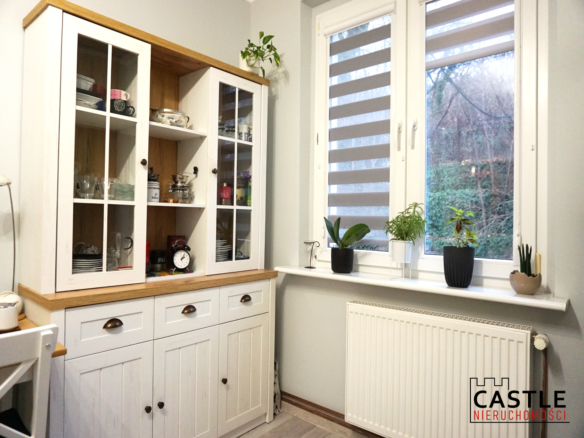Z kuchni i pokoju rozciąga się uspokajający widok na zieleń.