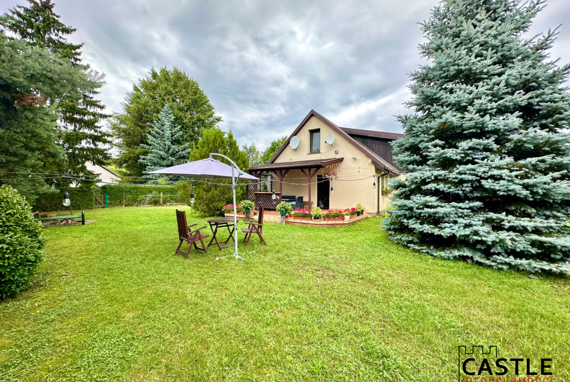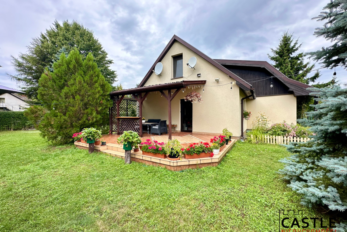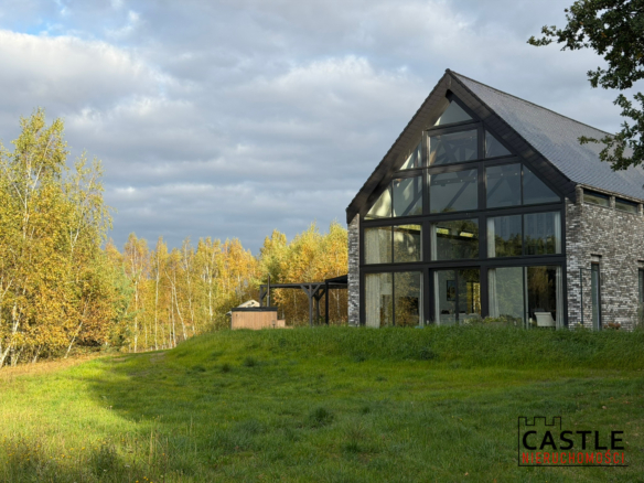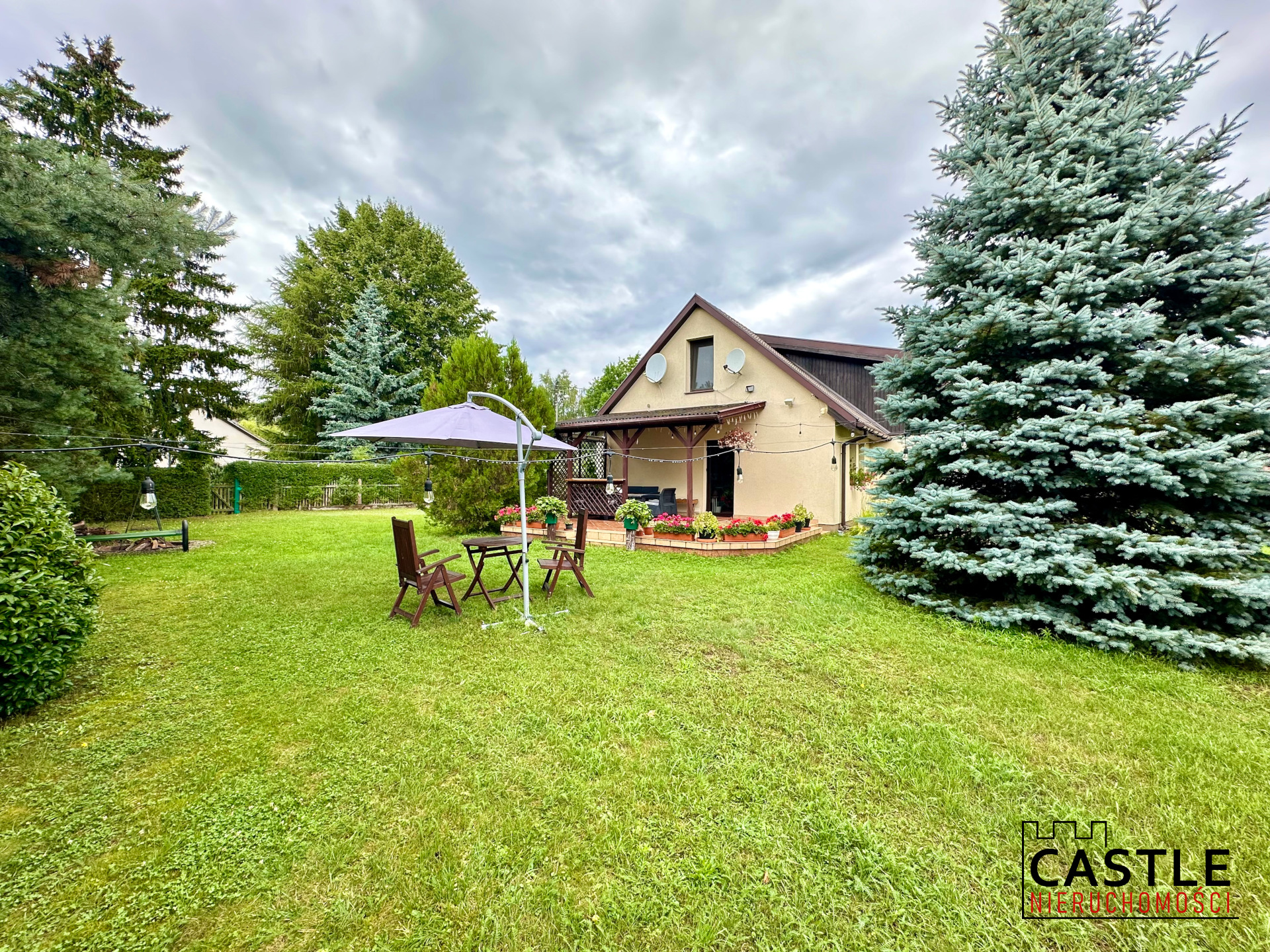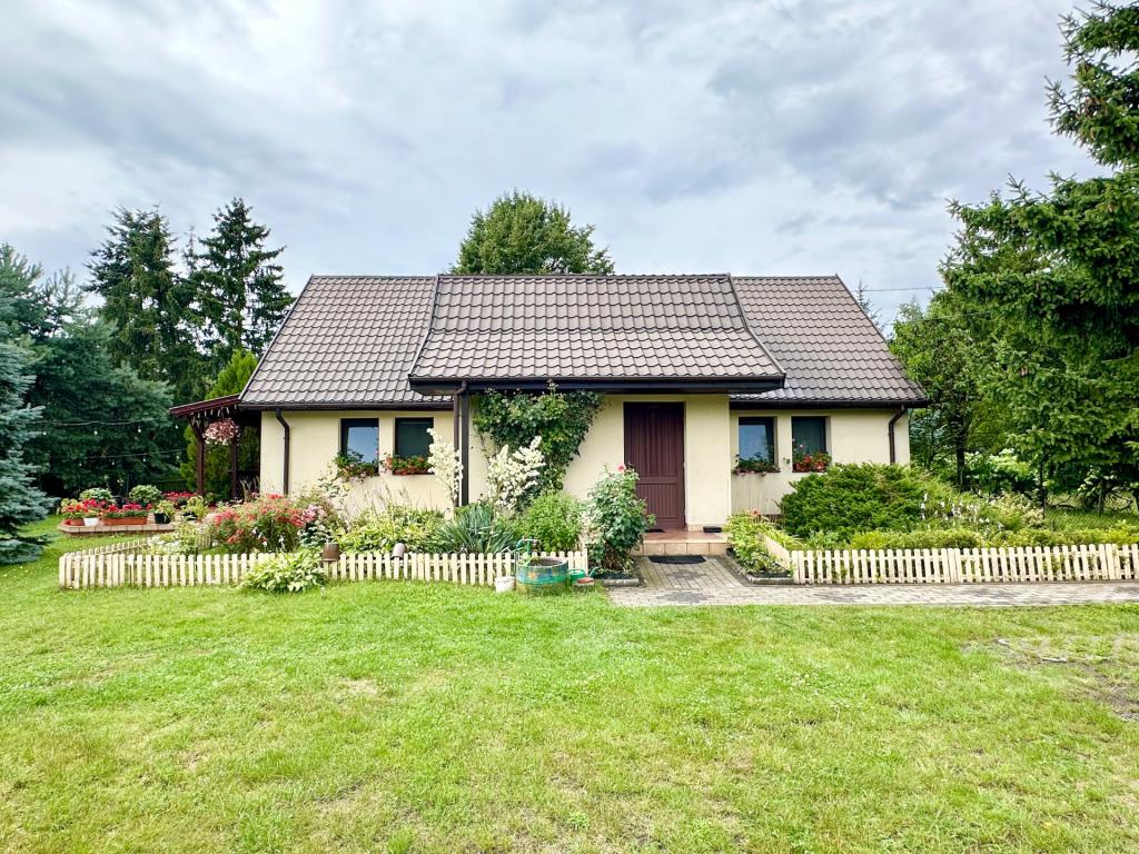 Na dużej, ogrodzonej działce o powierzchni 2500 m² znajduje się wolnostojący, ocieplony dom o konstrukcji drewnianej, idealny do całorocznego zamieszkania, o powierzchni 120 m².