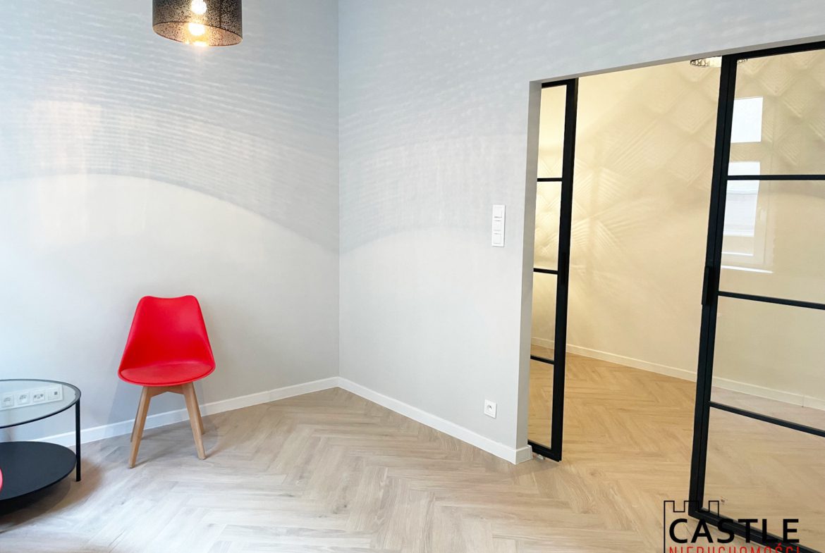 Standard wykończenia: mieszkanie po generalnym remoncie – wymienione instalacje, nowe okna, drzwi i ogrzewanie podłogowe, całkowicie nowa kuchnia i łazienka, przytulne wnętrza z klimatem kamienicy i nowoczesnym designem.